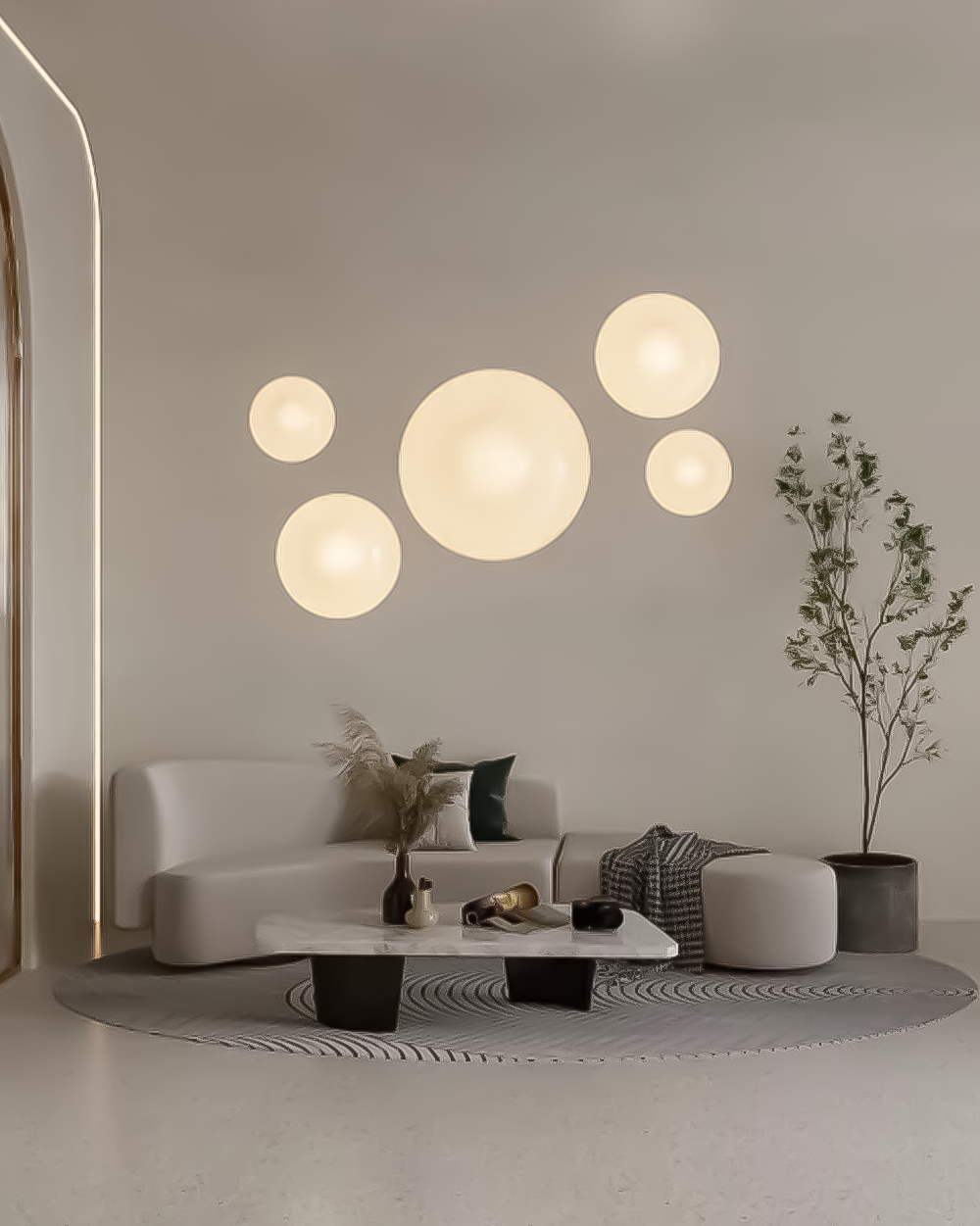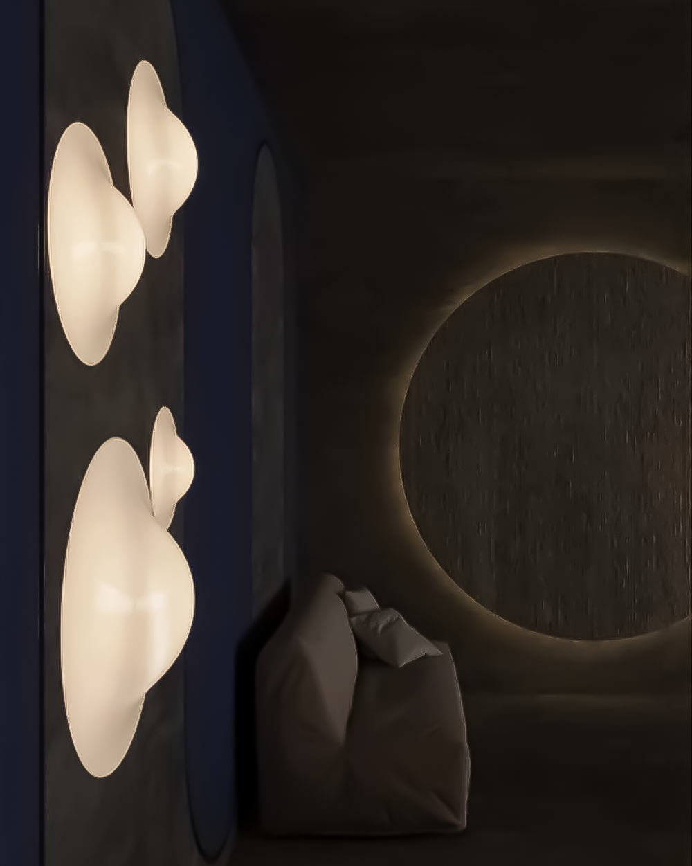Bubbles es una nueva idea original que rediseña la forma de las lámparas de plafón más comunes con base redonda. Presenta una línea nueva y audaz, una forma tridimensional y dinámica que evoca el efecto natural de la formación de una burbuja.