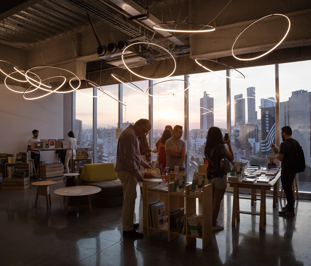 Gran Salón es la feria de ilustración más importante de México. Para su edición 2016 trabajamos en conjunto creando 3 instalaciones de luz en un espacio imponente con la ciudad entera como fondo.