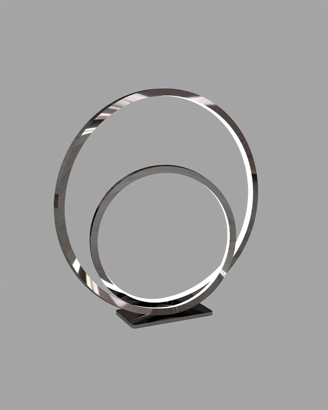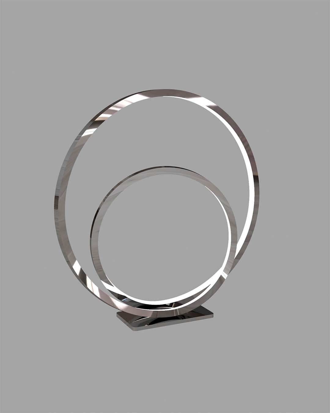 Mat Mesa, diseño sublime de acero inoxidable. Un bucle infinito que traza ondas continuas, creando un juego visual perfecto para acentuar espacios.
