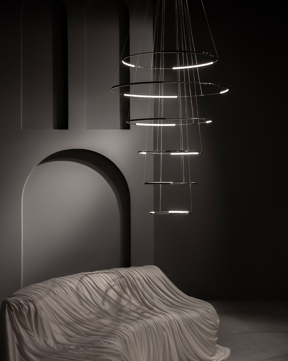 Spin se adapta sin esfuerzo a sus alrededores, convirtiéndose en un centro de atención que transforma la atmósfera con su suave y cálido resplandor. Diseñada para durar toda una vida, su construcción combina tecnología de vanguardia con exquisita artesanía.